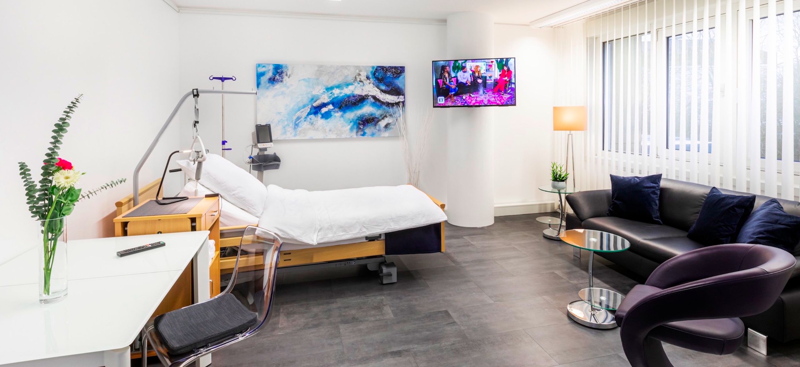 Every patient is allocated their own private room which is tastefully furnished with a comfortable bed for the patient to relax in during their treatment. The rooms are equipped with TVs with international channels and an extremely comfortable seating area for anyone accompanying the patient during their treatment.